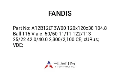FANDIS A12B12LTBW00 120x120x38 104.8 Ball 115 V a.c. 50/60 11/11 122/113 25/22 42.0/40.0 2,300/2,100 CE; cURus; VDE; USA